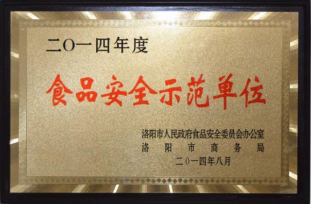 2014年9月3日下午,洛陽市召開創(chuàng)建食品安全示范單位現(xiàn)場推進會,洛陽市政府領導、相關委局負責人及食品安全示范單位申報企業(yè)參加了推進會,會上授予洛陽正大食品有限公司“食品安全示范單位”。
