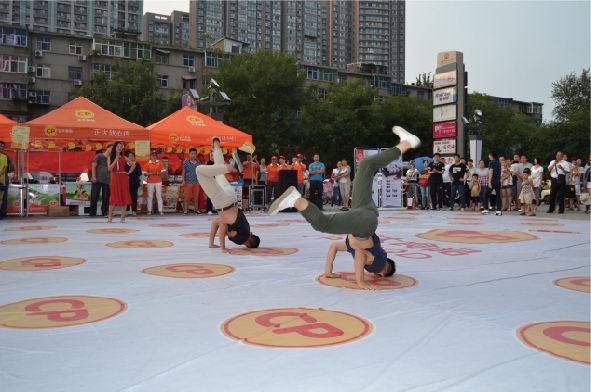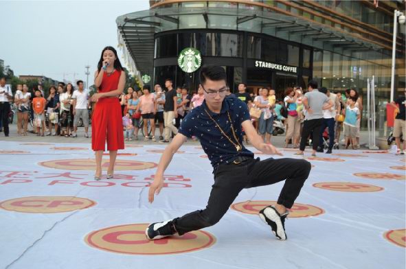 活動(dòng)時(shí)長(zhǎng)大約30分鐘,首先快閃人員在王府井南昌路店門口廣場(chǎng)中央集合,穿戴著簡(jiǎn)單大方、整齊利索的衣物四處游走在人群中。時(shí)間一到,音樂響起,歌手慢慢走近中央,一首振奮人心的“我和你”拉開整個(gè)活動(dòng)的序幕,瞬間引起了在場(chǎng)所有人群的關(guān)注。緊接著舞蹈演員閃亮上場(chǎng),展開了一場(chǎng)激情澎湃的機(jī)械舞,帶動(dòng)現(xiàn)場(chǎng)觀眾情不自禁參與到表演中來,此時(shí)人流迅速聚攏,引起圍觀。然后正大食品有限公司員工身著公司服裝,唱著正大集團(tuán)《愛是正大無私的奉獻(xiàn)》一起出現(xiàn)在廣場(chǎng)中央,隨后幾段歌舞串燒將現(xiàn)場(chǎng)氣氛推向***,在觀眾意猶未盡之時(shí)迅速閃開在人群之中?;顒?dòng)過程中穿插進(jìn)行了分發(fā)公司宣傳材料、食品安全知識(shí)宣傳單,現(xiàn)場(chǎng)觀眾品嘗了洛陽(yáng)正大豬肉調(diào)理品、醬鹵產(chǎn)品及集團(tuán)現(xiàn)代食品。