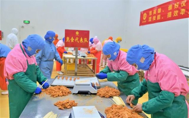 為提升生產加工效率讓基層員工有展現自我的機會形成“比、學、趕、幫、超”的氛圍,本次競賽共分為2個項目:小酥肉原料肉切條比賽和藤椒豬肉串穿串比賽。食品事業(yè)部各車間分別派出6名員工組成代表隊參與兩項比賽,在規(guī)定時間內根據加工產品的產量與合格率由現場品管進行打分,***終兩項比賽得分相加決出本次競賽的總分和排名。